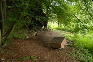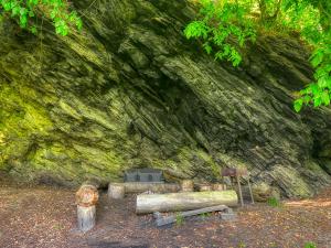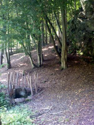 Skalní převis se studánkou nedaleko Krupičkova mlýna dal pojmenování osadě Černá skála, která se rozkládá na úseku Blanice pod Novým mlýnem.